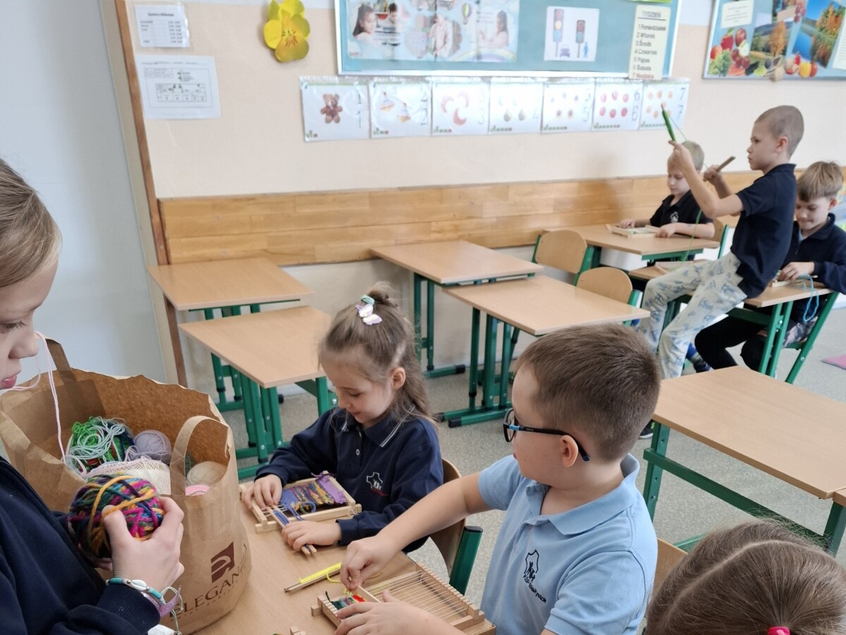 W naszej szkole wielu uczniów ma zdolności twórcze. Niektórzy realizują swoje pasje na kole robótek ręcznych poznając trochę już zapomniane techniki. Korzystając ze sprzętu zakupionego w ramach projektu „Laboratoria przyszłości” tworzymy dywaniki na krosnach. A może są to serwetki lub szaliki? Przeznaczenie do uzgodnienia. To fantastyczne, gdy można obserwować jak z niczego tworzymy własnoręcznie takie piękne rzeczy.